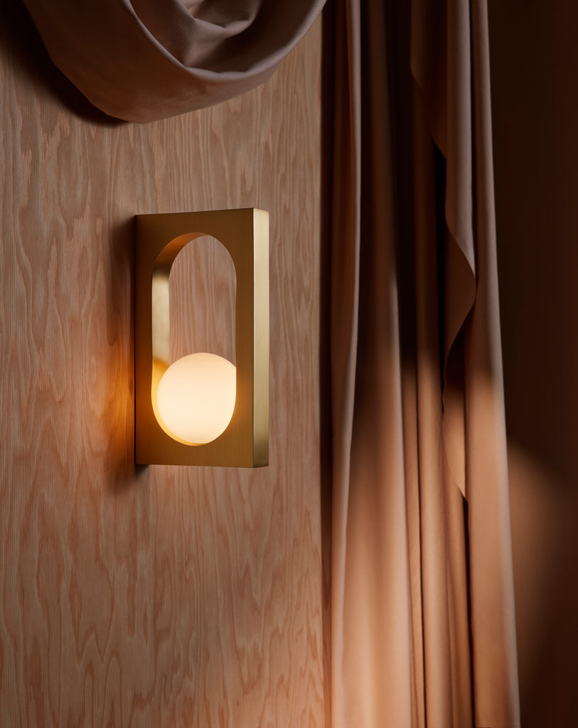 Different when viewed from every angle, Mythos possesses both linear and curvaceous qualities, allowing the illumination of the sphere to refract in the brass whilst nestled in its curves. Produced in both satin brass and blackened brass, a new finish for Broom, Mythos is distinguished by its classic character and its innovative form.