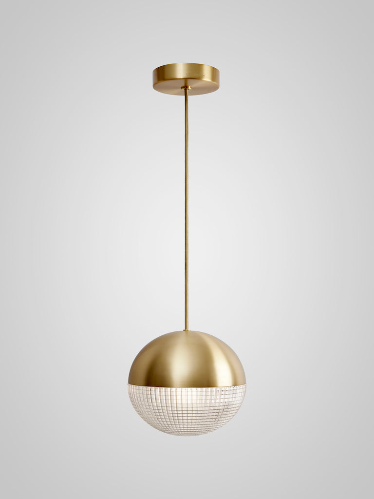 Finish: Brushed Brass or Matte Black with clear prismatic lens