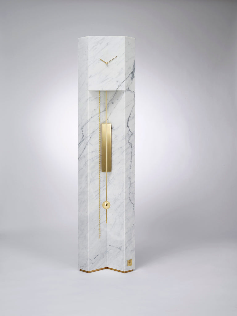 Time Machine is an exclusive statuesque grandfather clock designed to celebrate the 10th anniversary of Lee Broom. Juxtaposed to the traditionalism usually associated with such time pieces, Time Machine’s faceted angles and straight lines create a modernist silhouette which echoes of Brutalism.